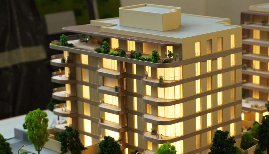 Dans l’ensemble, la maquette met en valeur l’esthétique du projet, sa fonctionnalité et son ambiance résidentielle, tout en constituant un excellent outil de présentation pour les promoteurs immobiliers ou les expositions architecturales.